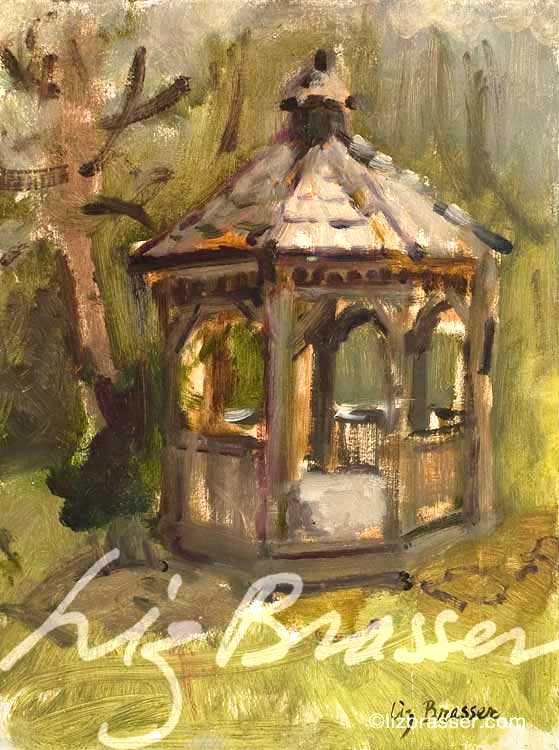 Gazebo at Clyburn ArboretumOil on panel.