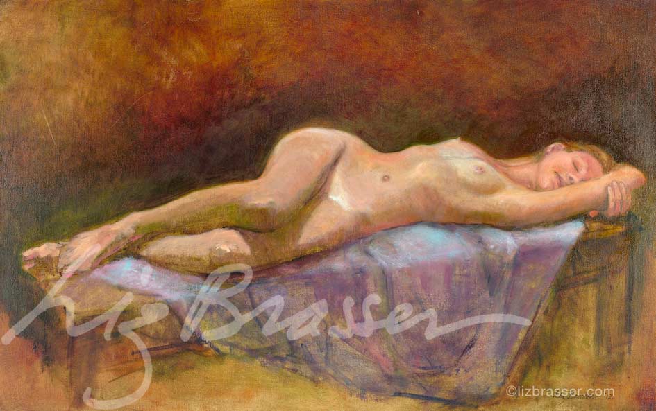 Sleeping SirenNude in a classical pose Oil on linen. Unframed size: 24 x 38 inches (609.6 x 965.2 cm)